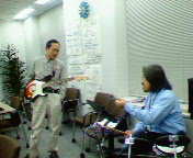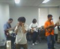 最初は課題となっているヴォーカルのハモリの練習組とギターの練習組に別れて練習。そして合同練習。本日は事務所での演奏の音を聞きつけてギャラリーが多かった!?