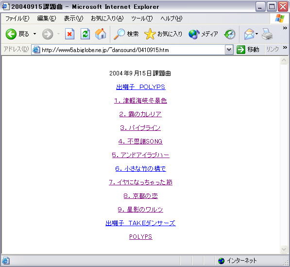 段無用ノ介のHPに課題曲全てをUP!MIDIファイルにしてアレンジした曲が聞けるようになっています。メンバーの要望により曲によってはパート毎のアレンジもしています。
