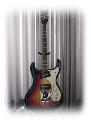 段無用ノ介の現在所有しているモズライトの中の「ファーストマンモズライト」。68年にモズライト社と提携を果たしたファーストマンは日本で製造販売を始めベンチャーズモデル「アベンジャー」が発売される。当時、本家のベンチャーズモデルが160,000円であったが、「アベンジャーは48,500円。大卒の初任給が30,000円の時代で決して安い値段ではなかった。
