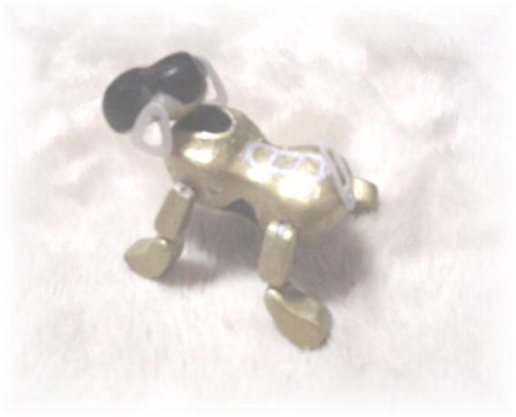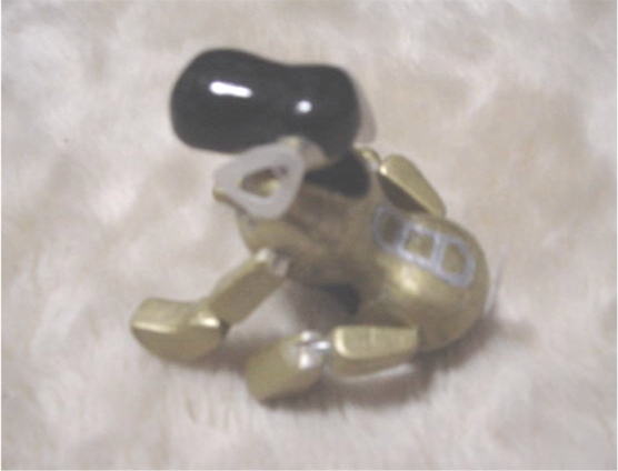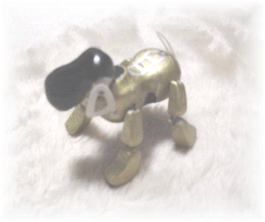 胴の部分にアルミワイヤーを通しイメージを確かめてみる。お座りのポーズで決めてみる。 まッ こんなもんか!? 今度のNAIBOは自由にポーズをとることができる様にアルミワイヤーを利用したのだ・・・! 右下の写真が本物のAIBOなのだ。