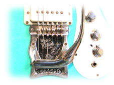 改造後のモラレス 加山雄三モデル 三つ目のつまみがと二つ目のトグルスイッチがファズ用(写真左) 左の写真がモラレスに組み込んだエーストーンのFAZZMASTER